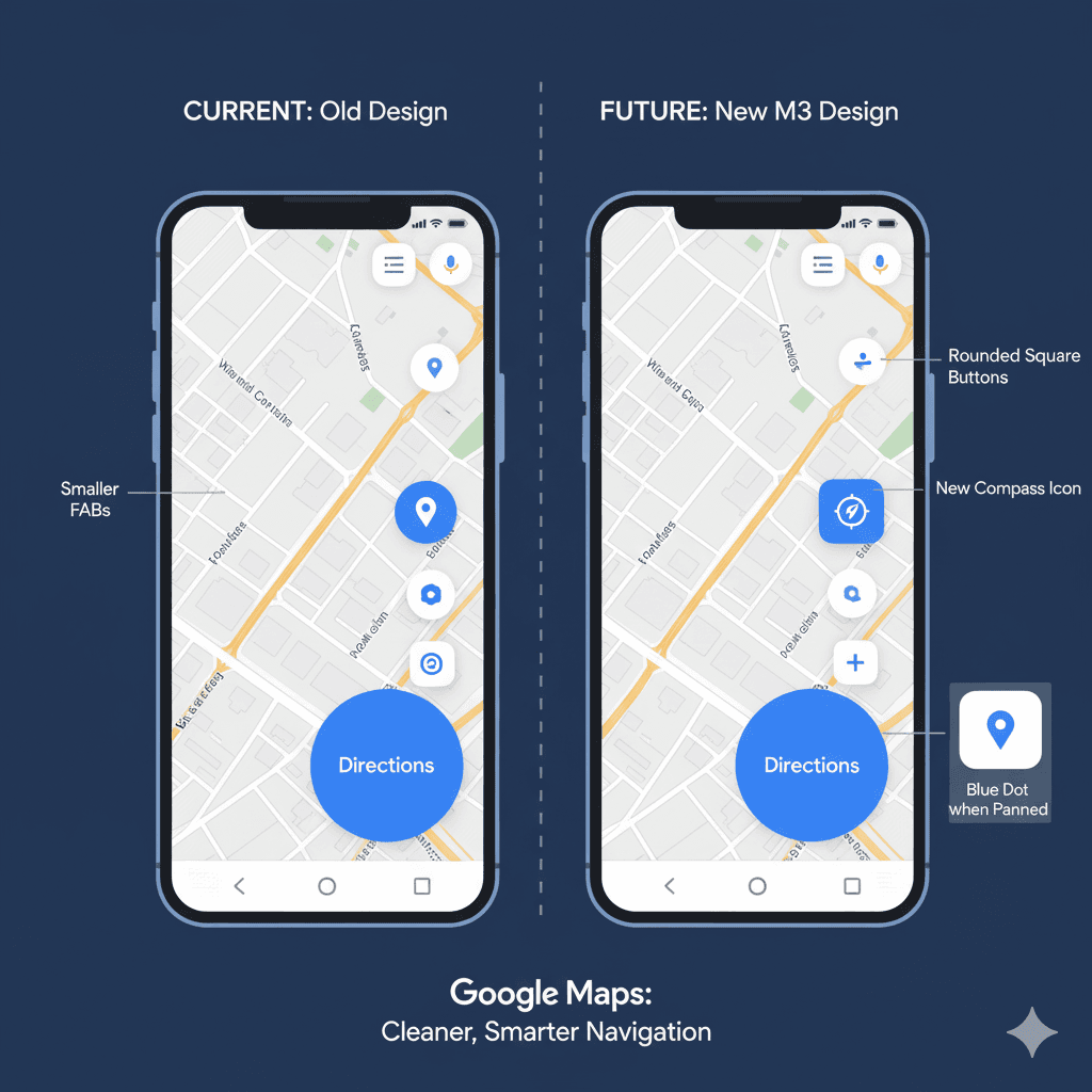 The first one is the Floating Action Buttons (FABs). The other one is the Current Location button. These updates make the app more compatible with the modern design language of Google, Material 3 Expressive.