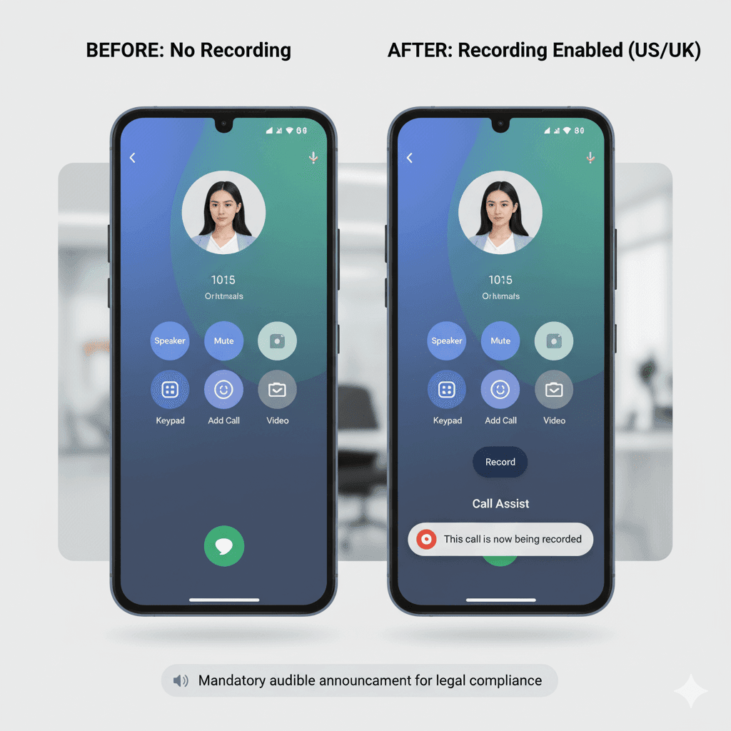 In-Call Button: There is an obvious Record button displayed on the screen during calls, usually in the Call Assist pill, and thus easy to activate.