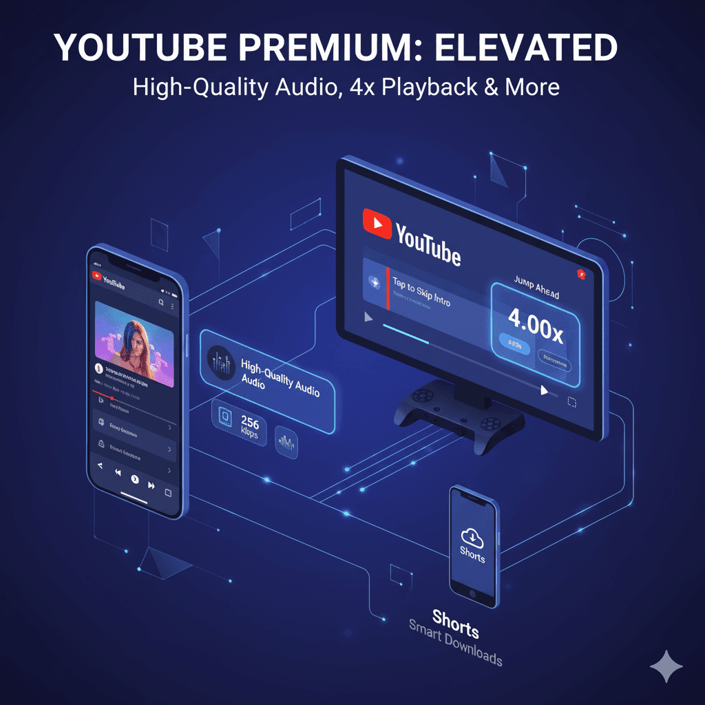 It will now have better quality music content (256 kbps) in the primary app, increased playback rates up to 4x, and introduced Jump Ahead and Shorts Smart Downloads to additional platforms.